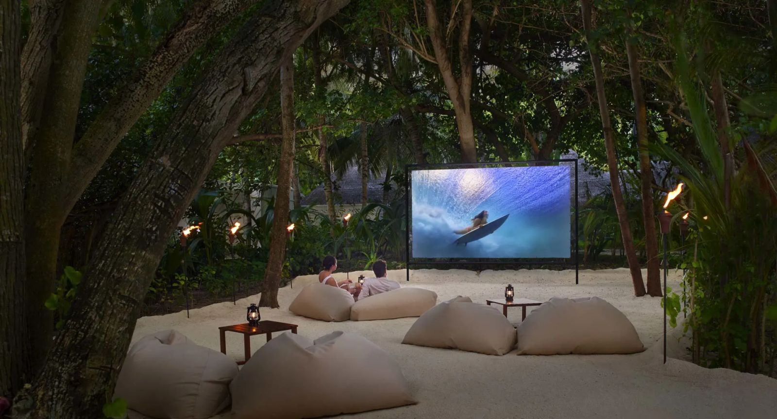 Families are well cared for. A lively kids’ club runs creative activities, while a family pool and sports facilities provide entertainment for all ages. Couples seeking a quieter atmosphere can slip away to the adults-only infinity pool or arrange a private dinner on a sandbank. Movie nights under the stars, cultural performances with traditional music, and bonfires on the beach bring the island together in the evenings.
