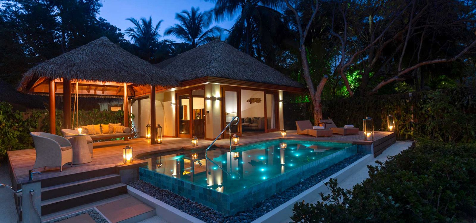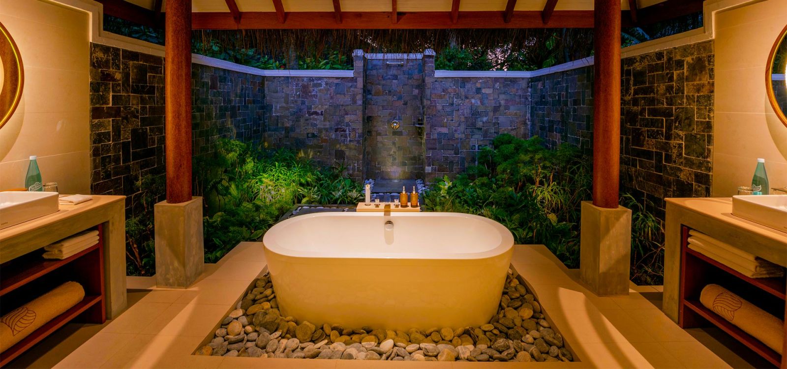 Villas come in beach and overwater styles, finished in rich wood and stone with thoughtful lighting and generous outdoor space. Many add private pools, though the sea sits just beyond the deck with a steady invitation to swim. Privacy is held carefully. Each villa feels like its own sanctuary, framed by tropical planting and set to catch the breeze.